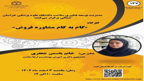 مدیریت توسعه فناوری سلامت دانشگاه علوم پزشکی خراسان شمالی برگزار می‌نماید: کارگاه آموزشی گام به گام مشاوره فروش