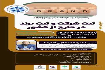 معاونت آموزش و پژوهش اتاق بازرگانی بجنورد با همکاری معاونت تحقیقات و فناوری دانشگاه علوم‌پزشکی خراسان شمالی برگزار میکند: "ثبت شرکت و ثبت برند در خارج از کشور"