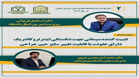 دکتر امید توپچیان معاون تحقیقات و فناوری دانشگاه، از ثبت رسمی دومین اختراع سال ۱۴۰۴ توسط اعضای هیئت علمی دانشگاه خبر داد و گفت: دومین اختراع سال جاری با عنوان «تثبیت‌کننده سیمانی جهت شکستگی اینترتروکانتریک دارای عفونت با قابلیت تغییر سایز حین جراحی»، توسط دکتر اسماعیل گریوانی و دکتر محمدامین یونسی هروی طراحی و به ثبت رسیده است.