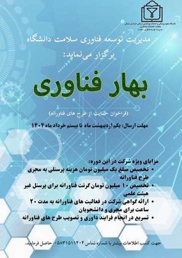 در جریان ارزیابی‌های صورت‌گرفته و با حضور هیئت‌های داوری تخصصی، نتایج بخش‌های مختلف پژوهش و فناوری اعلام شد که طی آن، اعضای هیئت علمی و دانشجویان دانشگاه علوم پزشکی خراسان شمالی موفق به کسب عناوین برتر شدند. موفقیت‌هایی که بیانگر تقویت زیست‌بوم پژوهش، رشد شاخص‌های علمی و توسعه فعالیت‌های فناورانه در دانشگاه است.